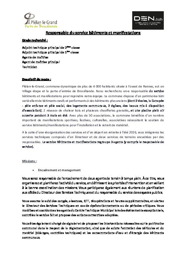 📌 Responsable du service Bâtiments & Manifestations